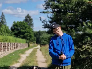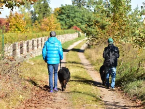 Spacery z psami w pięknych okolicznościach przyrody, udział w pielęgnacji psów, zajęcia edukacyjne  prowadzone w obecności psów, są stałymi elementami dogoterapii mieszkańców, którzy indywidualnie lub grupowo przyjeżdżają na Farmę.