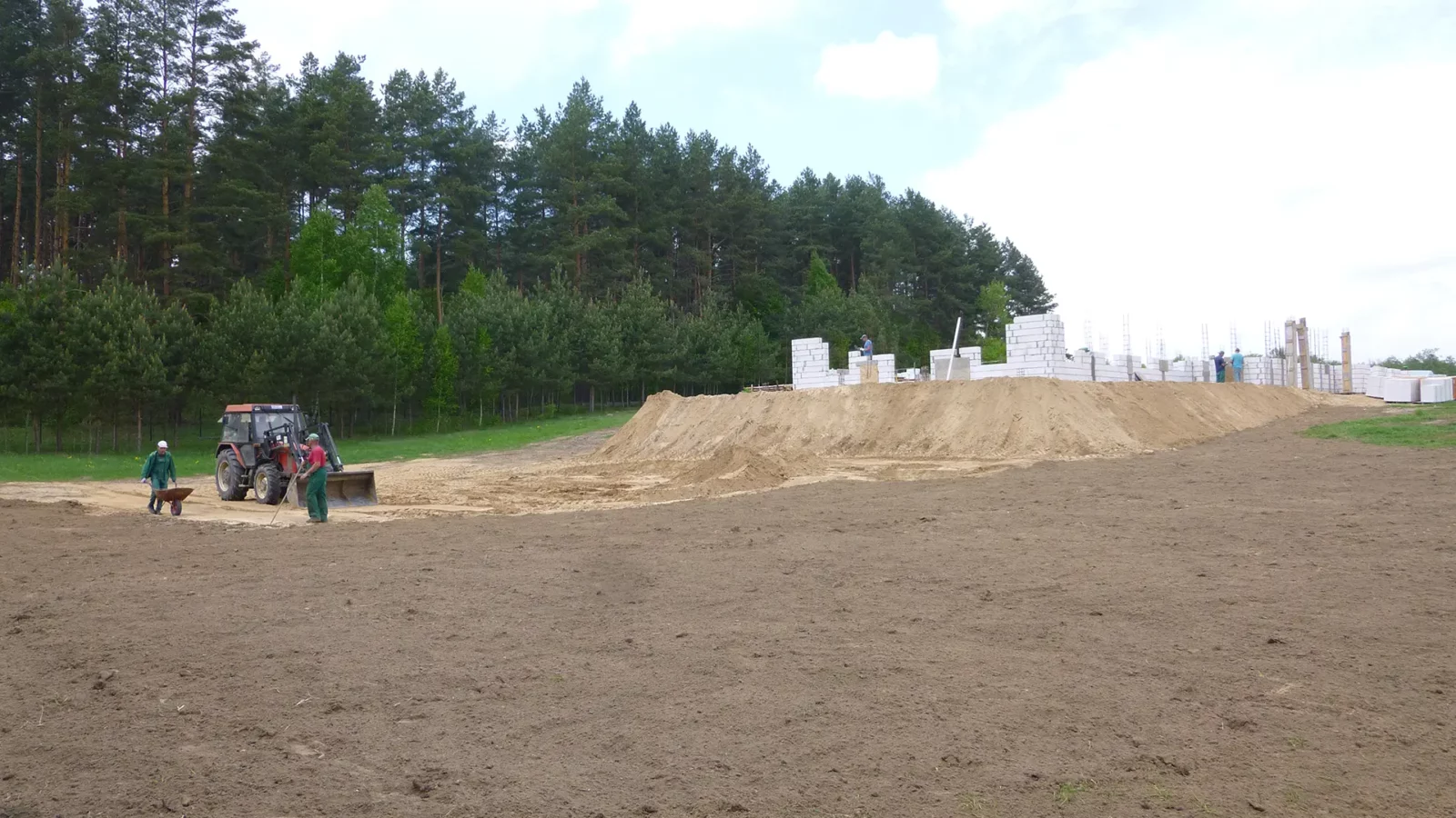 W 2011 roku podjęliśmy odważną decyzję o rozpoczęciu budowy systemem gospodarczym budynku gospodarczego. Entuzjazm, kompetencja i doświadczenie pracowników „Tęczowego Domu”, którzy stali się jednocześnie członkami Fundacji i zaangażowanie – zatrudnionych już wówczas na etatach – dorosłych mieszkańców Domu, sprawiły, że spory, solidny budynek powstał w ciągu jednego sezonu! Kierownikiem budowy i inspektorem nadzoru całego przedsięwzięcia został inż. Janusz Jabłoński. Byliśmy więc spokojni, że wszystko będzie zgodne z przepisami i sztuką budowlaną.