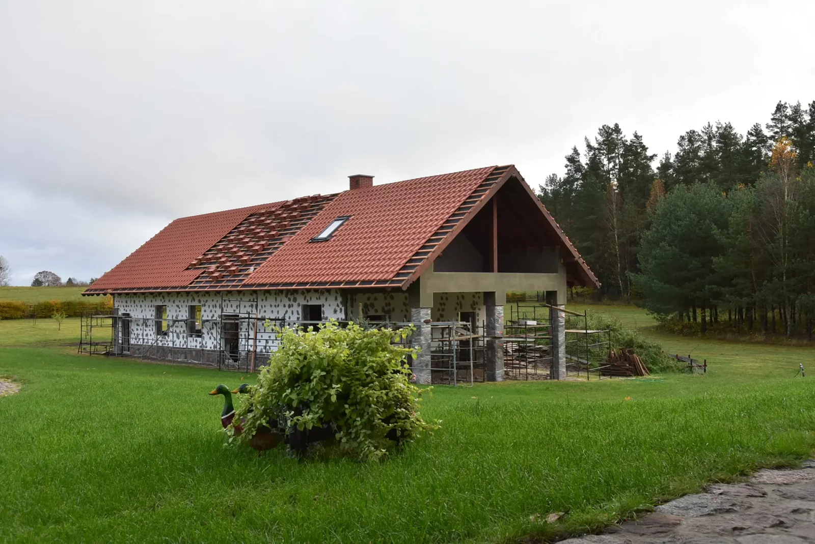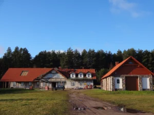 W latach 2017 – 2018 wybudowany został budynek inwentarski, w którym zamieszkały alpaki i psy. W ten sposób zakończyliśmy projekt zabudowy zagrodowej.