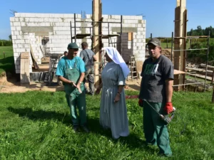 Wówczas zapadła decyzja Zgromadzenia o sprzedaży większej, ale odległej od Ełku działki rolnej w Szczecinowie i przeznaczeniu środków na budowę. Trud pozyskiwania dalszych środków, organizacji prac i prowadzenia działalności rolniczej przejęła „Tęczowa Fundacja” w Ełku założona przez przełożoną generalną Zgromadzenia Matkę Martynę Wysocką.
