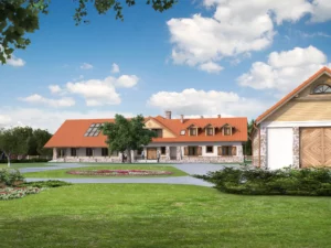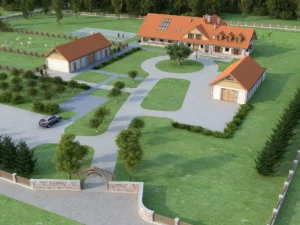 Architekt Maciej Matłowski dostosował projekt budynku mieszkalnego do naszych potrzeb. Dobraliśmy do niego gotowe projekty budynków gospodarczych. Nasze marzenie zyskało też własną wizualizację. Cierpliwie pozyskaliśmy wszystkie uzgodnienia i decyzje urzędowe.
